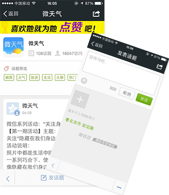 微(wēi)社區(qū)是(shì)基于商€₽♥家(jiā)微(wēi)信公衆賬号的(de)社交平台,社區(qū)雖小(xiǎ₽★o),但(dàn)商家(jiā)互不(bù)相(xi★∑'àng)識的(de)粉絲,可(kě)以在社區(qū)內(nè≥↕λi)進行(xíng)互動,在互動中共同創造內(nè♣σi)容發生(shēng)傳播,并且支持圖片、視(shì•®)頻(pín)、文(wén)字、表情等方式,讓交流無限。